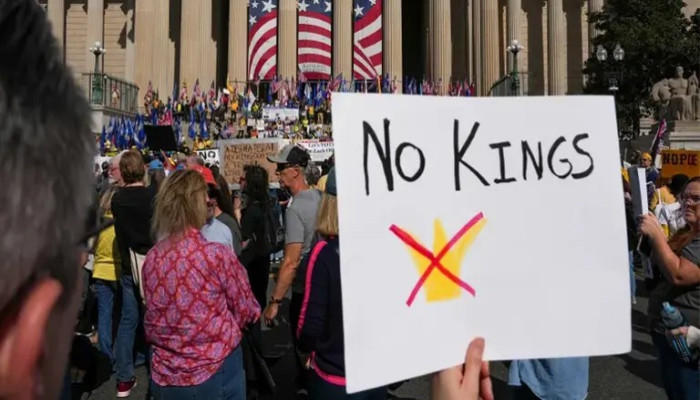 মার্কিন প্রেসিডেন্ট ডোনাল্ড ট্রাম্পের নীতির বিরুদ্ধে যুক্তরাষ্ট্রের পাঁচ গুরুত্বপূর্ণ শহরে বিক্ষোভ করেছেন প্রায় এক লাখ মার্কিন নাগরিক।স্থানীয় সময় গতকাল (শনিবার, ১৮ অক্টোবর) সকালে রাজধানী ওয়াশিংটন ডিসিসহ নিউ ইয়র্ক, শিকাগো, মিয়ামি ও লস অ্যাঞ্জেলেসে ট্রাম্পবিরোধী এ ‘নো কিংস’ বিক্ষোভের অংশ হিসেবে আড়াই হাজারেরও বেশি র্যালি বের করেন আয়োজকরা।প্ল্যাকার্ড নিয়ে শহরের গুরুত্বপূর্ণ পয়েন্ট, প্রধান সড়ক ও সাবওয়েতে অবস্থান নিতে দেখা যায় বিক্ষোভকারীদের। তাদের অভিযোগ, ট্রাম্পের অভিবাসন ও শিক্ষাসহ বিভিন্ন নীতি দেশকে স্বৈরতন্ত্রের দিকে ঠেলে দিচ্ছে। আয়োজকদের দাবি, শান্তিপূর্ণ পরিবেশে বিক্ষোভ অনুষ্ঠিত হয়েছে।